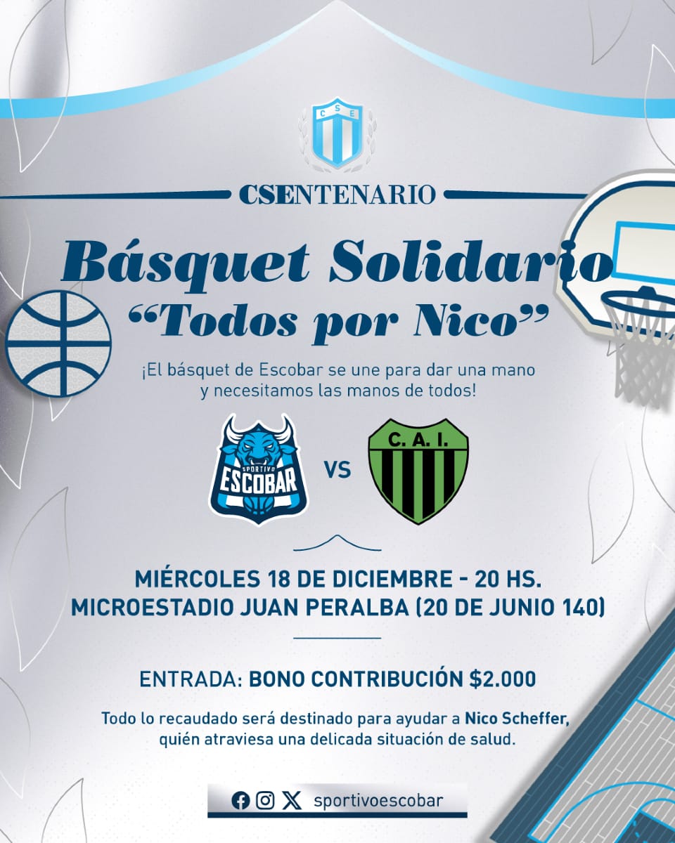 La cita es el miércoles 18 de diciembre a las 20.00 horas, en el microestadio Juan Peralba del club Sportivo Escobar donde se jugará un partido solidario con equipos de los clubes Independiente de Escobar y Sportivo Escobar, conformados por jugadores de categorías formativas, primera y maxibasquet.