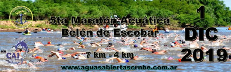 Este domingo se corre la 5° edición de la Maratón Acuática de aguas abiertas en Escobar organizado por la Escuela de Natación del Club Independiente y el club de Remo y Náutica de Belén de Escobar.