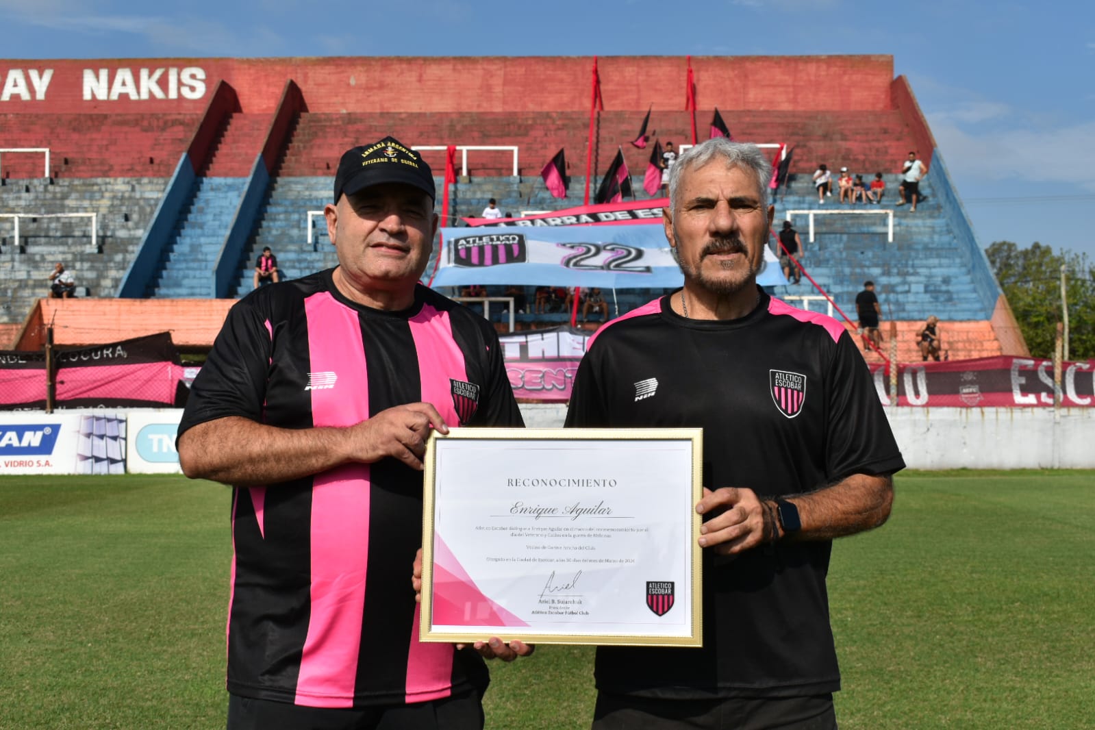 Antes del inicio del partido, el club Atlético Escobar reconoció la trayectoria y el valor de un veterano de Malvinas, Enrique Aguilar, vecino de la ciudad de Garín y fiel socio de la institución. En el marco de un nuevo aniversario del 2 de abril, el estadio se unió en un solo aplauso para abrazar a nuestro héroe. Mario Stampone fue el encargado de entregar el reconocimiento en el centro del campo de juego.