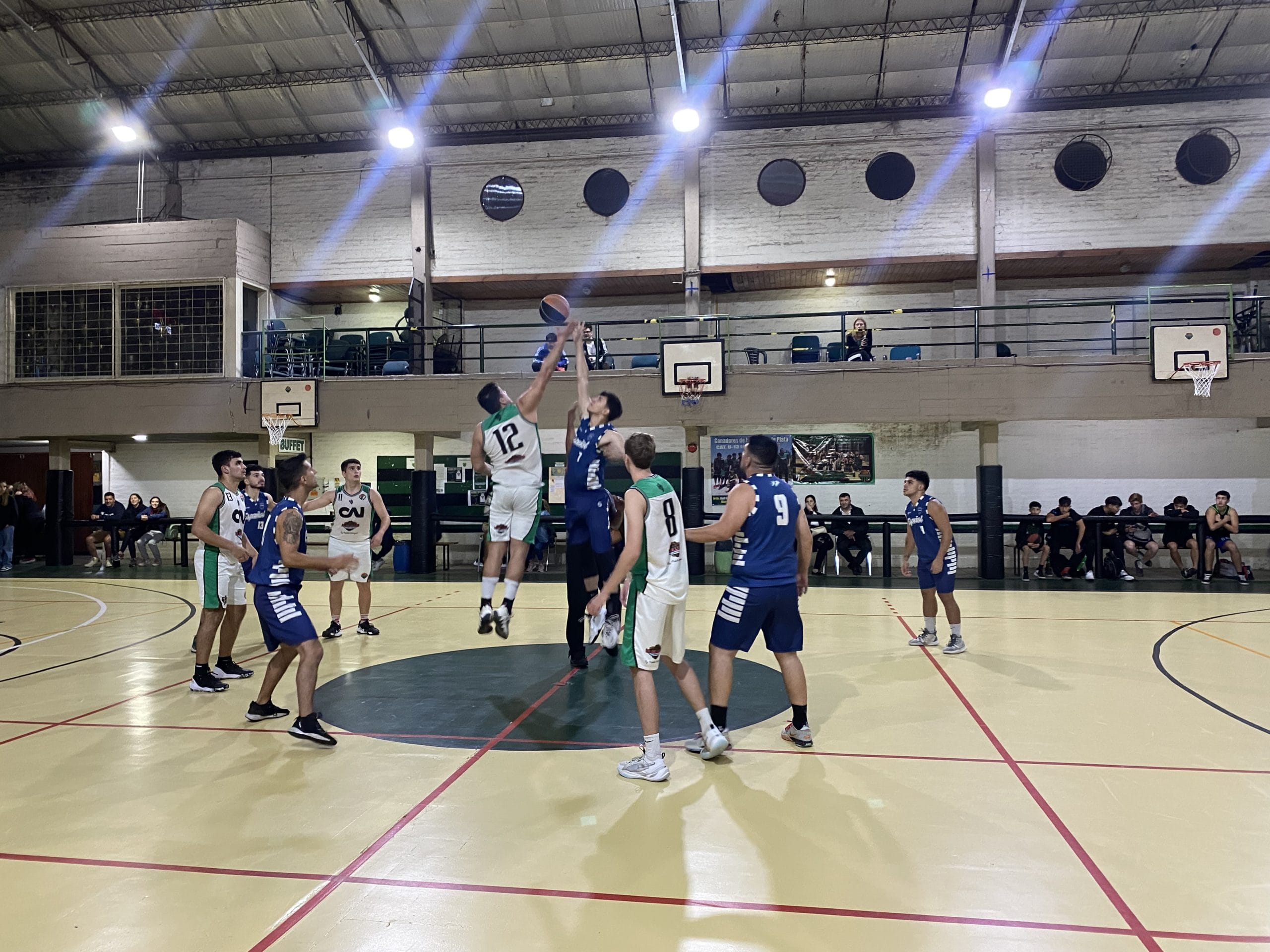 En el primer cuarto, el verdinegro tuvo un gran comienzo en el que controló la naranja y con lanzamientos desde el perímetro sacó una ventaja en el marcador sobre una defensa de español que no supieron cómo pararlos. No obstante, los azules crearon sus llegadas en las que anotaron y descontaron con juego interior, pero también se vio a un verdinegro sólido con los rebotes defensivos. El primer cuarto fue 22-12.