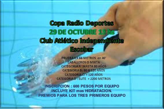 El sábado 29 de octubre, se realizará una nueva edición de la Copa Radiodeportes Escobar de Natación. La misma volverá a ser organizada por la Escuela de Natación del Club Independiente, que a pesar de su cargada agenda, ya ha comenzado con los preparativos.
